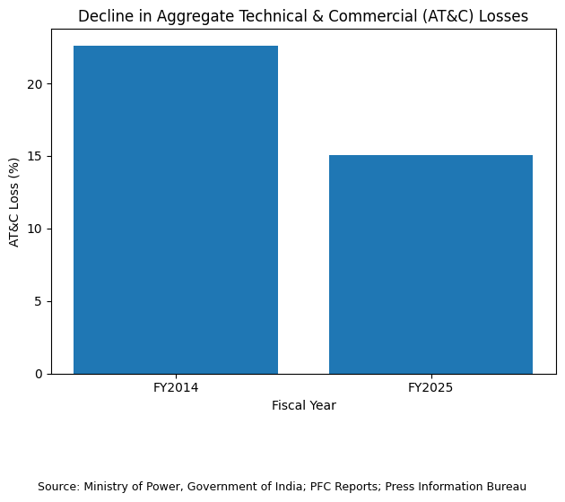 - Aggregate Technical and Commercial (AT&C) losses — a composite measure including line losses, theft, billing errors and collection shortfalls.