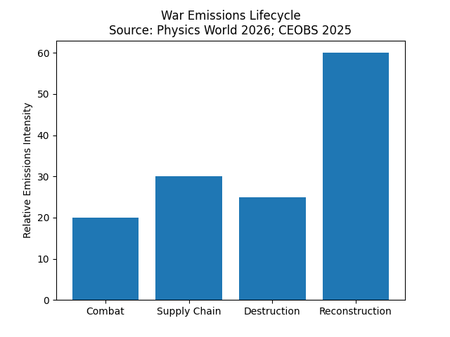 The “double emission” cycle of war is particularly catastrophic. Carbon is emitted first to destroy civil infrastructure and then emitted again—often at a much higher intensity—to rebuild it using carbon-intensive materials like cement and steel. In Ukraine, the 10-year reconstruction effort is projected to generate 741 to 781 million tonnes of , which is approximately 4.3 times the country’s pre-war annual emissions. Similarly, the rebuilding of Gaza is estimated to produce 31.4 million tonnes of emissions, an amount greater than the annual carbon output of Portugal or Sweden.