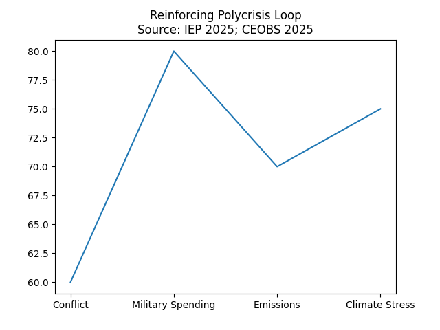 This persistent state of “low-level” but “long-duration” conflict creates a permanent drain on both financial and cognitive resources. The $19.97 trillion lost to violence could fulfill the developed world’s climate finance commitments many times over. Instead, the world is locked in an escalating arms race where every dollar spent on the military generates twice the greenhouse gas emissions of a dollar spent in the civilian sector.
